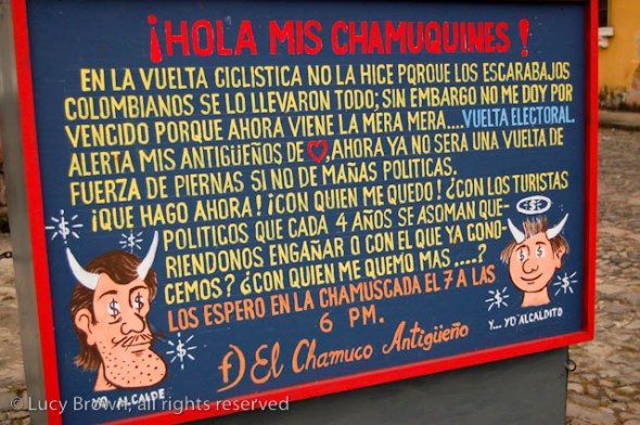Perched on his bicycle with rum bottle for fuel, the devil glared down on those leaving Antigua for Guatemala City, several weeks before being set ablaze.
