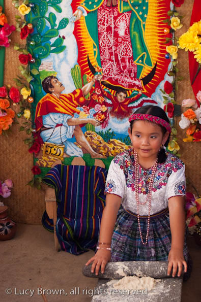 Every 12th of December in Guatemala on the Día de la Virgen de Guadalupe children throughout the country dress up in colorful, traditional indigenous costumes and carry an image of the Virgin of Guadalupe in local processions. Usually marimba and hordes of traditional food stalls go with the festivities.