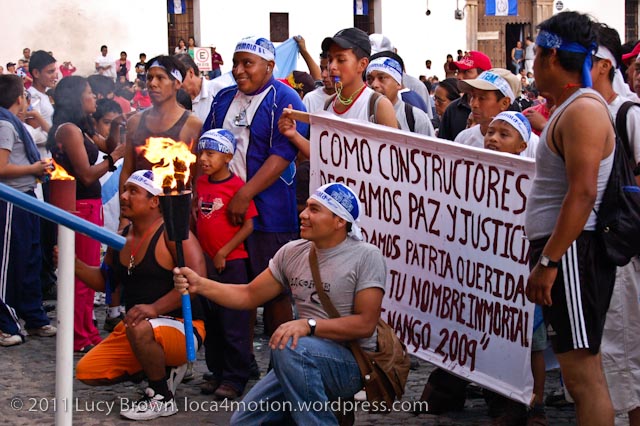 These are some of my favorite images of the runners shot on September 14, 2009 and 2011 in Antigua, a favorite place for fetching the independence flame. Last year, due to severe weather causing treacherous landslides countrywide, authorities suspended the tradition for safety reasons.