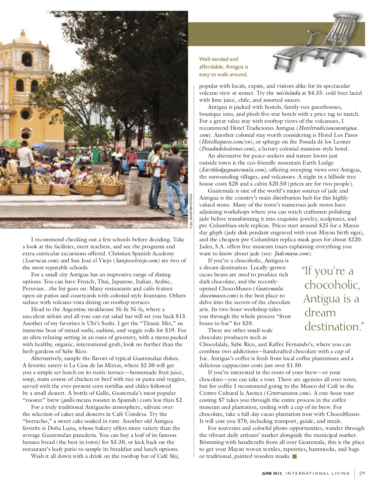 I regularly contribute to International Living’s print magazine, e-letters, conference promotions, and website as their Guatemala correspondent.