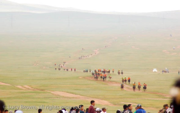 The race coming in fast across the steppe.